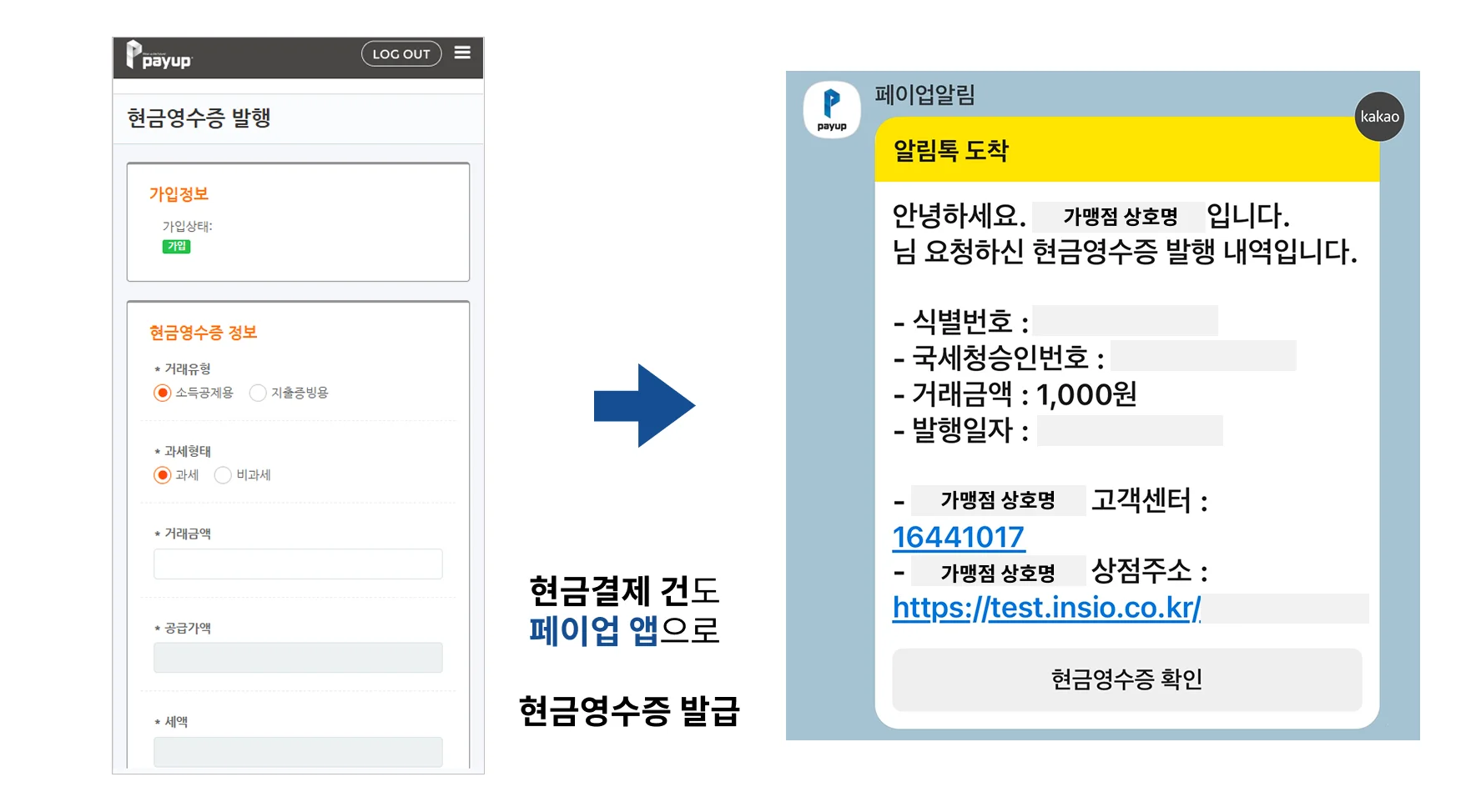 카카오톡/문자로 현금영수증이 바로 전달되어 고객 만족도가 높아졌어요.