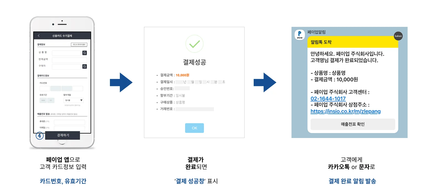 반면 수기결제는 직원이 고객님의 카드 정보를 받아 즉시 결제를 진행할 수 있어 빠르고 확실하게 결제가 완료됩니다.