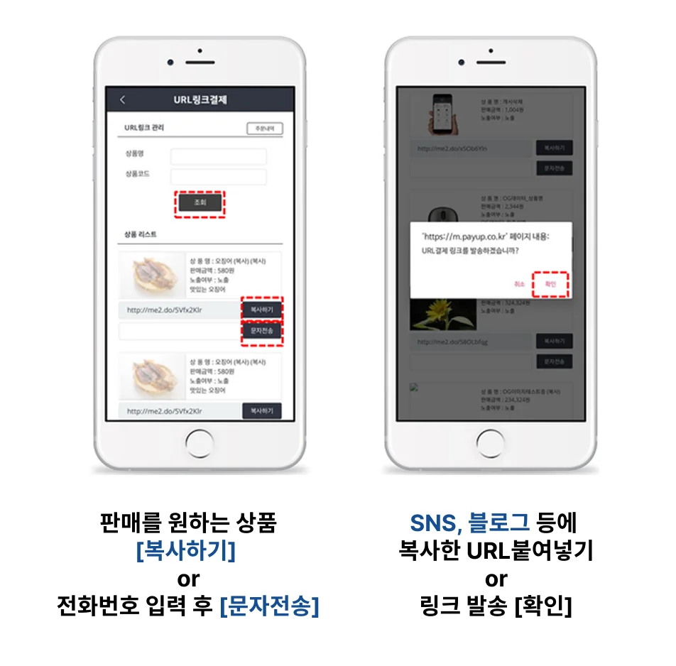 URL 복사 또는 고객 휴대폰 번호로 결제 요청